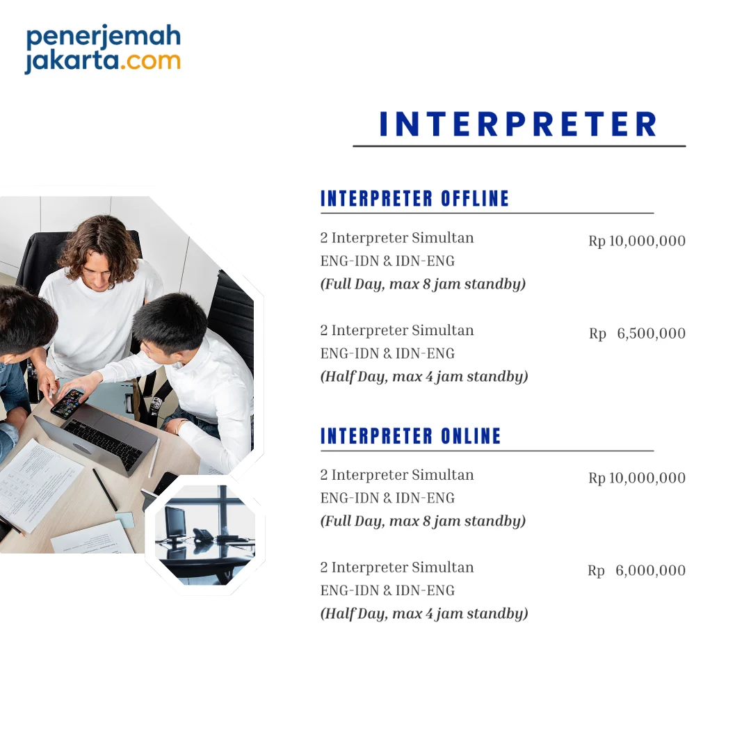 Dalam komunikasi bisnis dan acara multibahasa yang efektif, kehadiran interpreter profesional adalah kunci sukses. penerjemahjakarta.com hadir sebagai mitra terpercaya dengan layanan lengkap dan jangkauan nasional, siap mendukung kebutuhan penerjemahan simultan Anda baik secara tatap muka langsung (offline) maupun virtual (online).